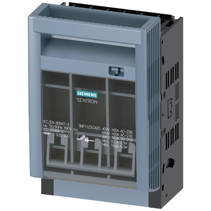 SENTRON, Fuse switch disconnector 3NP1, 3-pole, NH000, 160 A, for assembly and installation on Mounting plate, box terminal, Cover level 45 mm