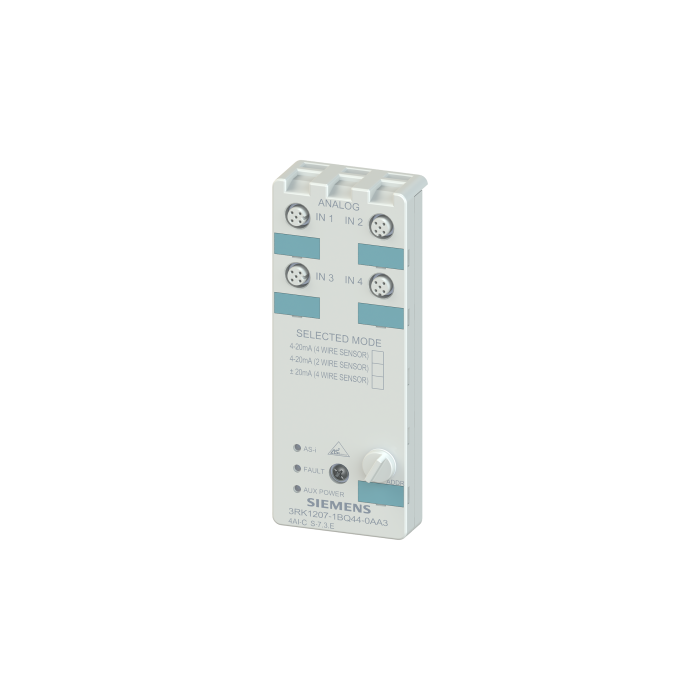 AS-i compact module K60 analog 4 AI, IP67 4 x input, current 4..20 mA, +/- 20 mA for 4-wire sensors 4 x M12 socket Mounting plate 3RK1901-0CA00 must be ordered separately