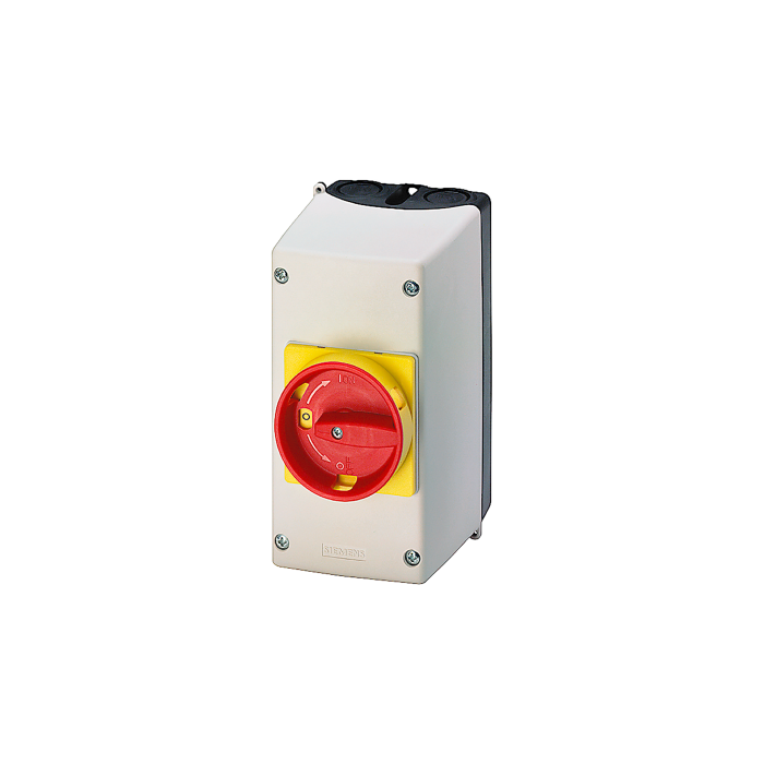 molded-plastic enclosure for surface mounting with emergency stop rotary operating mechanism 54 mm, with metric cable gland