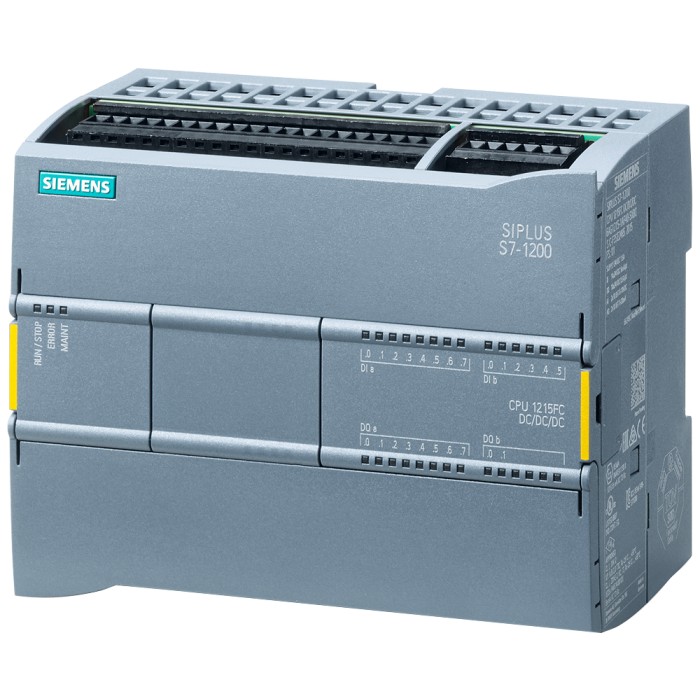 SIPLUS S7-1200 CPU 1215FC DC/DC/DC based on 6ES7215-1AF40-0XB0 with conformal coating, -25ÔǪ+55 -¦C, compact CPU, DC/DC/DC, 2 PROFINET ports, onboard I/O: 14 DI 24 V DC; 10 DQ 24 V DC 0.5 A; 2 AI 0-10 V DC, 2 AQ 0-20 mA DC, power supply: DC 20.4 - 28.8 V DC, program/data memory 150 KB