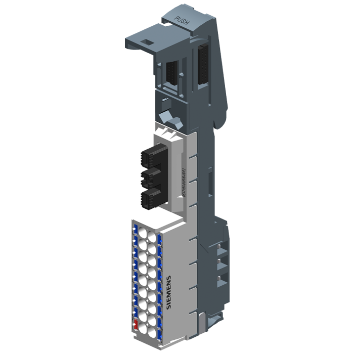 SIMATIC ET 200SP, Potential distributor module, PotDis-BaseUnit PotDis-BU Typ P2, light-colored, 1 x P1-potential, 17 x P2-potential, Push-In terminals. P1-, P2- and AUX-rail diconnected from left BU, Packaging Unit: 1 Piece, WxH: 15mm x 117mm