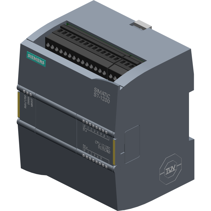 SIMATIC S7-1200, CPU 1212FC, compact CPU, DC/DC/relay, onboard I/O: 8 DI 24 V DC; 6 DO relay 2 A; 2 AI 0-10 V DC, Power supply: DC 20.4-28.8V DC, Program/data memory 100 KB
