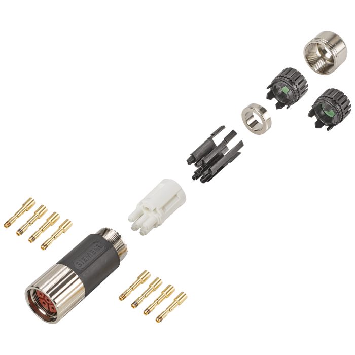 power connector Sz. 1 type: 6FX2003-0LU00 6-pole socket, screw cap 1x 6-pole insulator 8x socket contact (1-2.5 mm2) 2x cable terminal for cable diameter: 7.5 - 12 / 9 - 15