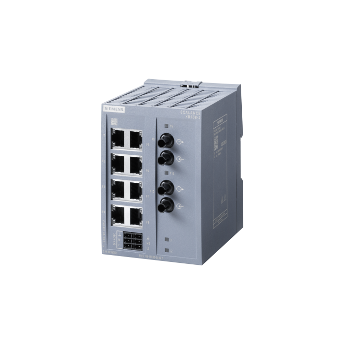 SCALANCE XB108-2 unmanaged IE switch, 8x 10/100 Mbit/s Ports, 2x 100 Mbit/s multimode BFOC, for setting up small star and line topologies, LED diagnostics, IP20, redundant power supply 24 V AC/DC Manual available as a download