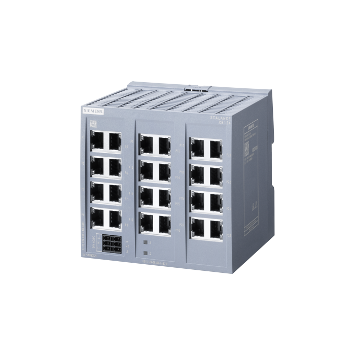 SCALANCE XB124 unmanaged IE switch, 24x 10/100 Mbit/s RJ45 ports; for setting up small star and line topologies; LED diagnostics, IP20, Redundant power supply, 24 V AC/DC Manual available as a download