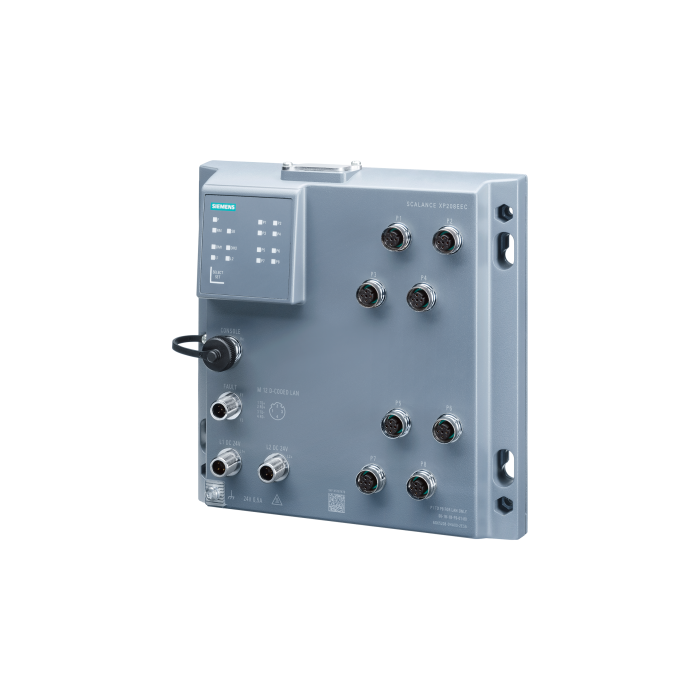 SCALANCE XP208EEC, managed IE switch with railway approval IEC 62443-4-2 certified; (EN 50155, EN 45545); 8x 10/100 Mbps M12 ports, IP65, LED diagnostics, error signaling contact, redundant power supply, PROFINET IO device, network management, can be operated in redundant ring, dust caps, incl. electronic manual on CD-ROM, C-plug optional