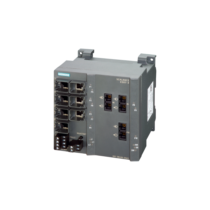SCALANCE X307-3LD, managed plus IE switch, 3x 1000 Mbit/s SM SC 7x 10/100 Mbit/s RJ45 ports, LED diagnostics, error-signaling contact with select/set pushbutton, PROFINET IO device, network management, integrated redundancy manager, office features (RSTP, VLAN, IGMP,..) C-plug in scope of delivery . SCALANCE X307-3LD, MANAGED PLUS IE SWITCH, 3 X 1000MBIT/S SM SC 7 X 10/100MBIT/S RJ45 PORTS, LED DIAGNOSTICS, FAULT SIGNAL. CONTACT WITH SELECT/SET BUTTON, PROFINET-IO DEVICE, NETWORK MANAGEMENT, INTEGRATED REDUNDANCY MANAGER, OFFICE FEATURES (RSTP,