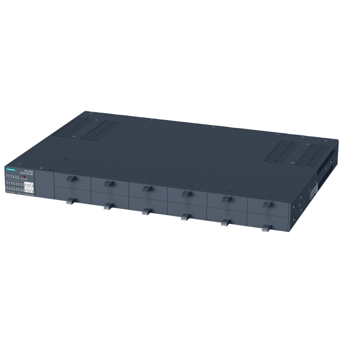 SCALANCE XR324-4M EEC; managed IE switch, 19 rack; 16x 10/100/1000 Mbit/s for RJ45 ports electrical; 4x 100/1000 Mbit/s for 2-port media modules, electrical or optical; LED diagnostics; error signaling contact; select/set pushbutton, PROFINET IO device, network management, integrated redundancy manager; power supply 2x 24 V DC; Ports in the front. SCALANCE XR324-12M EEC MANAGED IE SWITCH, 19" RACK; POWER SUPPLY WITH 2 X 24V DC; DATA CABLE OUTLET FRONT SIDE; 16 X 10/100/1000MBIT/S RJ45 PORTS ELECTRICAL; 4 X 100/1000MBIT/S FOR 2-PORT- MEDIA MODULES, ELECTRICAL OR OPTICAL; LED DIAGNOSTICS; FAULT
