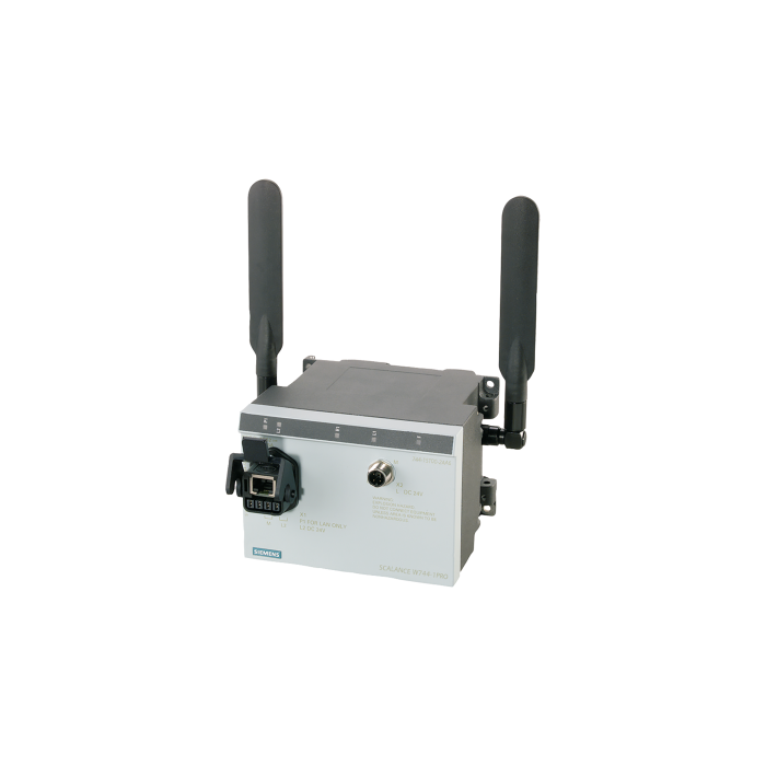 IWLAN Ethernet Client Module SCALANCE W746-1PRO, only for operation in the USA, 1 radio interface, IEEE 802.11b/g/a/h, industrial wireless LAN (IWLAN), 2.4/5GHz, up to 54 Mbit/s, WPA2/802.11I/11E, up to 8 IP devices, NAT, observe national approvals, IP65 (-20-+60 C), PoE, EN 50155, scope of delivery: 2x ANT 795-4MR, IP67 hybrid plug-in connector, only available as on CD-ROM English/German. IWLAN ETHERNET CLIENT MODULE SCALANCE W746-1PRO, 1 RADIO INTERFACE, IEEE 802.11B/G/A/H, INDUSTRIAL, WIRELESS LAN (IWLAN), 2.4/5GHZ, UP TO 54 MBIT/S, WPA2/802.11I/11E, UP TO 8 IP-DEVICES,NAT, NATIONAL APPROVALS USA, POE, IP65 (-20-+60 DGR C), EN50155
