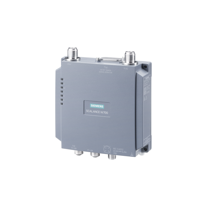 IWLAN access point, SCALANCE W778-1 M12 EEC, 1 radio, 2 N-CON antenna port, iFeatures support via key plug, IEEE 802.11a/b/g/h/n, 2.4/5 GHz, gross data rate 300 Mbit/s, 2x M12 max. 100 Mbit/s, PoE integrated 2-port switch, redundant 24 V DC, M12 A-coded IP65, -30... 70 -¦C, plug slot WPA2/802.11i/e,conformal coating EN 50155, EN 45545, observe national approvals! CERT ID: MSN65-W1-M12-E2 Scope of delivery: Manuals on CD-ROM, English/German; M12 sealing caps, for operation outside of USA/Israel