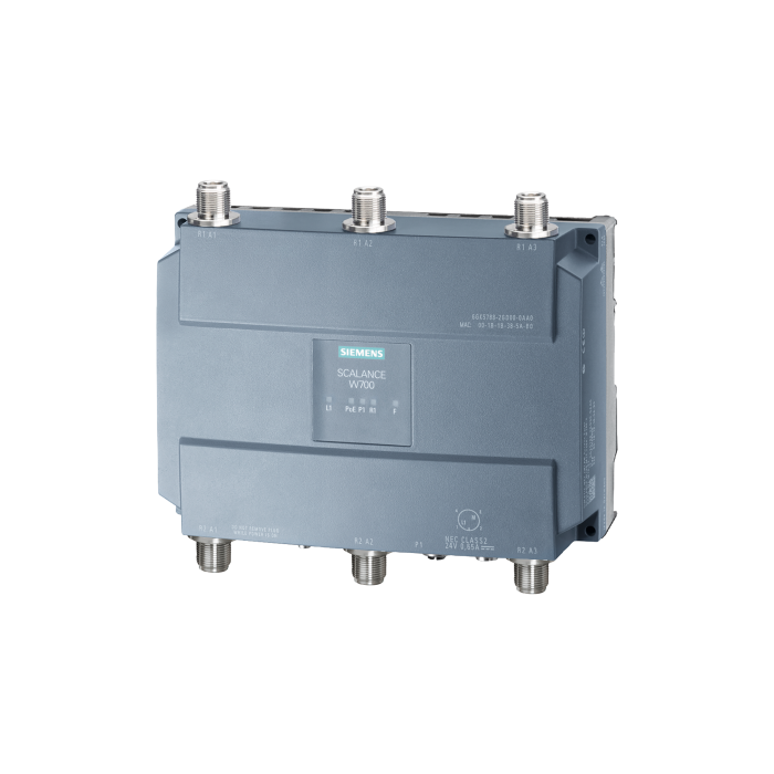 IWLAN Access Point, SCALANCE W788-2 M12 EEC USA, 2 radios, 6 N-CON antenna port, iFeatures support via key plug, IEEE 802.11a/b/g/h/n, 2.4/5GHz, gross 450 Mbit/s per radio, 1x M12 max. 1 Gbit/s, PoE, redundant 24 V DC, M12 A-coded IP65, -40...+70 -¦C, plug slot WPA2/802.11i/e,conformal coating EN 50155, EN 45545, observe national approvals! CERT ID: RAPN-W2-M12-E3, includes: MPCIE-R1-ABGN-U3, scope of delivery: Manuals on CD-ROM, German/English, M12 sealing caps, only for operation in USA