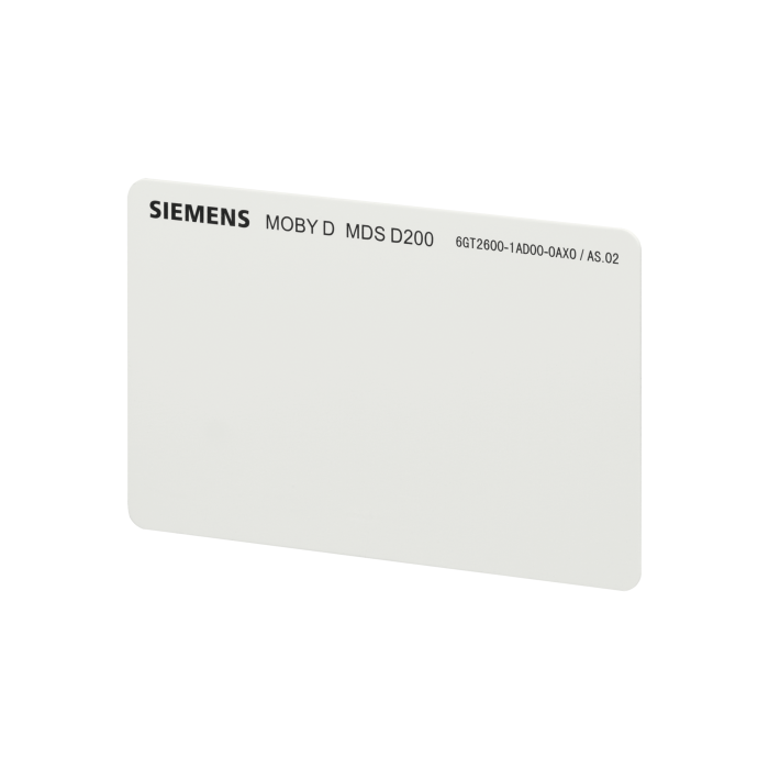 Transponder MDS D200 for RF200/RF300 ISO/MOBY D, PVC ISO card, ISO 15693, Chip type TI TAGIT HFI, 256-byte user memory; 85x 54x 0.8 mm (LxWxH); Minimum order quantity 250 units